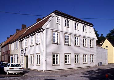 Fredrikstad: Bøckmann, Færgeportgaten 82 Dette hjørnehuset ble oppført kort etter den store brannen i 1830, for uhrmager Ole Nielsen Bergsland. Huset har to fulle etasjer samt en høy mansardetasje som avtegnes tydelig i den brede endegavlen. Huset har en klassisistisk komposisjon, med regelmessig plasserte vinduer. Hovedinngangen er plassert asymmetrisk. Ole Bergsland solgte i 1837 eiendommen til Joh. A. Berg, og siden har den vært igjennom hyppige eierskifter. Blant de mer stabile innehavere kan nevnes handelsborger Theodor Julius Moum, som eiet huset i årene 1866-89, Petter Tveter, som var innehaver i årene 1897-1917 og frk. Helga Olsen, som var eier i årene 1938-1963. Etter henne overtok Aashild Bøckmann.