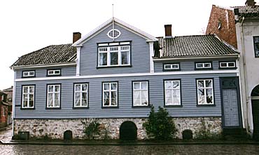 Fredrikstad: Prestegården, Voldportgaten 69 Dette halvannenetasjes huset ble bygget etter brannen i 1830, antagelig rundt midten av 1830-tallet. Byggherren kan ha vært P. J. Kjerulf, som sto som eier av Voldportgaten 69 fra 1835 til 1842. Senere eiere har vært kapteinvagtmester Jens Lemmich Dahl og Fredrikstad by. Sisnevnte kjøpte av Dahl i 1855, og benyttet fra dette år huset som bolig for Fredrikstads sogneprest - herav gårdens navn. Frem til dette hadde presten bolig i Tamburen (Færgeportgaten 78b). Prestegården er bygget i laftet tømmer, og kledt med liggende panel. Huset har halvvalmet tak mot Voldportgaten, og en markant ark på hovedfasaden mot Tollbodgaten. Denne er sannsynligvis påbygget omkring 1910, og er preget av jugendstil/nordisk nybarokk. Ellers har bygningen et enkelt klassisistisk preg.