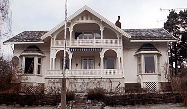 Kongsvinger: Eiler Baanruds vei 4 Huset er antagelig oppført 1903. Dets ornamentikk er preget av datidens populære jugendstil, hvilket synes på den forenklede dekoren og de strukne buene i gavlen. Husets midtstilte verandaparti dominerer fasaden, og er flankert av to små karnapper. I dekoren finnes gotiske (spissbuede) trepass.