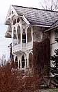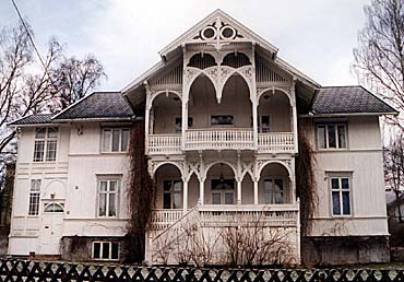 Kongsvinger: Eiler Baanruds vei 6 Huset er en perle i nygotsik panelstil. Et slikt uttrykk ble populært i løpet av 1870-tallet, med arkitektene Paul Due og Bernhard Steckmest. Karakteristisk er en vertikal streben i bygningsmassen, med utstrakt bruk av spissbuer, og luftige svevegavler. Husets utvendige "kniplingsarbeider" er svært omfattende. Husets arkitekt var mest sannsynlig Kongsvingers viktige byggmester og arkitekt Günther Schüssler, som har utført Sand prestegård i Odal, en enklere variant av Eiler Baanruds vei 6. Sirkeldekoren i gavlen ble også brukt som gjennomgangsmotiv av Schirmer og von Hanno på stasjonsbygningene langs Kongsvingerbanen (1850-tallet), og likeledes av Georg Bull langs Grundsetbanen (1860-tallet). Den sammensatte grunnflaten, som forøvrig også var et trekk ved 1870-tallets trearkitektur, har nr. 6 fått senere, ved et tilbygg på venstre flanke. Den spesielle utformingen tyder på at byggmesteren/arkitekten har hatt god kontakt med miljøer utenfor Kongsvinger; kanskje Kristiania eller Bergen. Ellers er bygningen med sin oppbygning i én og en halv etasje representativ for en byggemåte som ble populær gjennom blant andre Schirmers og von Hannos arbeider på 1850-tallet, innenfor historismens villa-arkitektur. Dette komposisjonelle grepet var også vanlig innen murarkitekturen. Huset ble sannsynligvis oppført for overbanemester Wangen i 1879, og overtatt av tannlege Eiler Baanrud, som veien er gitt navn etter, i 1897.