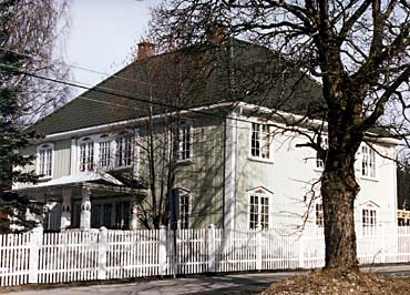 Kongsvinger: Alfsplassen, Rynnings gate 1 Husmannsplassen Alfsplassen har nok sitt navn etter Jon Alfsen, som brukte plassen omkring 1770. Plassen lå under søndre Tråstad, og den såkalte Winsnesløkken lå under Alfsplassen. Alfsplassen vestre, der en stuebygning fra omring 1750 sto, ble skilt ut i 1790, og i 1919 overtok Anton Skyrud eiendommen. Han var lærer ved Kongsvinger og Omegns Arbeidsskole, kalt "Arbeidsskolen" og "Snekkerskolen", fra 1909. Til Alfsplassen ble det flyttet en låvebygning omkring 1890. Denne tjente opprinnelig som lager ved byggingen av Kongsvingerbanen og stasjonen. De øvrige bygningene ble oppført i Anton Skyruds tid. Våningshuset ble til ved at Skyrud foretok en fullstendig forvandling av den gamle stuen, hvis grunnflate ble tre ganger større. Huset sto ferdig i 1924, og i første etasje ble Snekkerskolen drevet. Skolen fikk nye lokaler i 1929, da undervisningsbygningen sto ferdig. Denne ble overtatt av A/L Alfsplassen i 1973, og huser Frimurerlogen Den Faste Borg. Skyrud fikk oppført stabburet i 1930-årene. Anton Skyrud var selv arkitekt for de tre bygningene han fikk oppført. Våningshuset har den frodigste utformingen, med en ganske kompakt form, og en symmetrisk komponert hovedfasade dominert av et fremskutt verandaparti. Huset er utført i nordisk nybarokk; den samme stil som i en forenklet utgave preger undervisningsbygningen. Stabburet har et langt mer nasjonalromantisk preg. Villaen ble tilbygget en innkjøringsportal som er godt tilpasset villaens utførelse i 2002, utformet av den nåværende eier, Arne Skyrud.