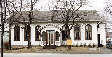 Kongsvinger: Kongsvingers bedehus, Tommelstads gate 9 Kongsvingers bedehus ble oppført i 1877 på en tomt som ble gitt i gave fra A. Gjems og Antonia Schøyen, for Kongsvingers Indremissionsforening. Det ble innviet 18. November 1877, ved sogneprest Widerøe. Foreningen holdt tidligere til i farver J. Gundersens hus, som sto i spissen for byggingen av bedehuset. Huset har enkel, gotiskpreget utforming, med spisse vinduer. Bedehuset er bygget som ett enkelt kirkeskip, langstrakt i formen. Huset lider litt under sine skjemmende omgivelser.