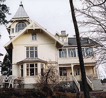 Oslo: Fagerhøi, Alvheimveien 6 Denne storslåtte villaen ble oppført i 1890 for hattemaker Hans H. Holm, som drev utstrakt forretningsvirksomhet i Osterhausgaten, etter tegninger av arkitekt Heinrich Jürgensen. Den ligger på toppen av en høyde, og danner med sitt stolte tårn et utmerket blikkfang på stedet. Over villaens to fulle etasjer gir tårnet ytterligere to plan, der det øverste gir en flott utsikt over fjorden og øyene. Stilmessig er bygningen ellers holdt i en ganske enkel sveitservariant, med et verandaparti som ble tilføyet i 1909-10 for J. Nerlien, ved den samme arkitekt Jürgensen. Før Nerlien var en grosserer E. J. A. Schee eier av Fagerhøi. I nyere tid er det påbygget postmoderne takarker.