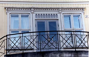 Hovedhusets gamle inngangsparti og den nye trappen.