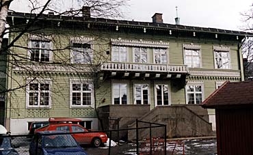 Oslo: Høien, Schwensens gate 11 Høien er en enorm trebygning i flott ornamentert overgangsstil, tidlig sveitser, med proporsjonale empire-levninger, og med svært sveitsiske detaljer. Spesielt sveitsisk er det svært store takutstikket. Huset kan se ut som en herskapelig videreføring av Hallings gate 5, som ligger like i nærheten, og er oppført like før Høien. Sydfasaden er symmetrisk, med en kraftig balkong, og en midtstilt monumentaltrapp og terrasse. Høien ble oppført for den engelske trelasthandleren Thomas Sewell omkring 1849-1853. Huset ble overtatt for grosserer H. C. Mathiesen omkring 1860. To trappehus ble tilbygget ved J. F. Lühr 1868; disse er noe mindre detaljert ornamentert, men de brede, kraftige horisontalbåndenes løvsagsarbeider er gjentatt i puss, i en noe forenklet utgave. Husets utforming vitner om at en dyktig arkitekt står bak. Vindusutformingen, med inndeling og vindusbekroninger, er temmelig lik den man finner på tegningene til et enetasjes bolighus ved H. E. Schirmer, ca. 1840-45. Schirmer benyttet også slike vinduer på "slottet" Ring-Stabekk. Huset har en dominerende beliggenhet på en haug; dette ga tidligere god havutsikt, men huset gjemmer seg nå blant leiegårder bak en kirke. Siden 1900 har bygningen vært på kommunale hender, og huser fremdeles institusjoner. Omtalt i Kristiania i Oslo, bd. III, s. 80. Byantikvarens arkiv. Historisme i tre. (306 Schirmer, 342 Høien, s. 132-133)