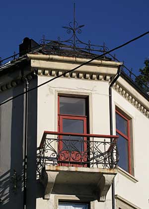 Detalj av hjørnet og balkongen.