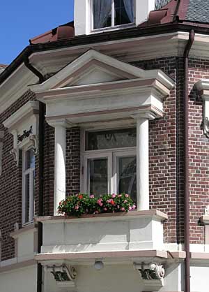 Detalj av hjørnet og balkongen.
