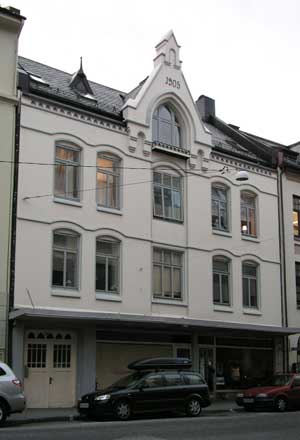 Murarkitektur i Ålesund: Lolandgården, Kipervikgaten 1b Denne gården ble oppført i 1905-06 for urmager Bernhard Emil Loland fra Kristiansand, ved arkitekt Einar Halleland. Loland hadde i flere år boligadresse i Kipervikgaten 1a. Før bybrannen i 1904 hadde han også en gård i Kipervikgaten. Gården er oppført i pusset tegl over tre fulle etasjer, og har en symmetrisk komponert gatefasade. Første etasjes butikkvinduer har vært underlagt store forandringer gjennom årenes løp. Midtaksen markeres ved brede vinduer i annen og tredje etasje, samt ved fasadens hovedmotiv; en kraftig markert frontgavl fremhevet av parstilte konsoller og et spissbuet vindu. I sideflankene er vinduene smalere. Overdekningene er stikkbuer, sammenbundet av horisontale stukkbånd. Foruten gesimsbåndets spissbuer er fasaden enkelt artikulert. Stiluttrykket er nygotikk. Vinduene er ikke lenger de opprinnelige. Ved folketellingen 1910 bodde Loland her med sin familie. En liten boenhet ble leiet ut til den gamle enken Ane Aas, som fikk pensjon av Fyrvæsenet. En del av eiendommen skilt ut for bygging av Misjonskirken, som ble byggemeldt i 1938.