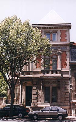 Bordeaux' Fin-de-Siècle og Belle Epoque: 151 Boulevard du Président-Wilson Ved det nittende århundrets slutt, sannsynligvis tidlig på 1890-tallet, ble dette borgerhuset bygget etter tegninger av arkitekt C. Martin. Hans navn er hugget inn i en sten i sokkeletasjen på huset som har annen og tredje etasje utført i teglsten og huggen sten. Komposisjonen er asymmetrisk, med et fremskutt tårnparti og et tilbaketrukket inngangsparti. Stilistisk er bygningen holdt i nyrenessanse.