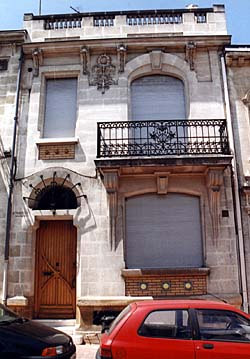 Bordeaux' Fin-de-Siècle og Belle Epoque: 6 Rue Levieux Dette toetasjes huset er bygget etter tegninger av arkitekt Raooul Paincout, som hadde bolig og atelier like ved (Rue Frantz-Despagnet). Paincouts navn er gjengitt på fasaden. Huset er antagelig bygget omkring 1905, og er holdt i en glatt, organisk art nouveau - med fine arbeider i huggen sten og smijern. Spesielt bemerkelsesverdig er det Brussel-inspirerte inngangspartiet. Et blikkfang er det kraftige solsikkemotivet under gesimsen. Fasaden er bekronet med en kraftig balustrade. Balkongens smijernsmotiv minner om det byggmester Taillefer anvendte i 47 Rue Adrien Baysselance.