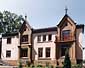 Fra Drammens murarkitektur: Nedre Storgate 24 Dette huset ble bygget for trelasthandler Svend Haug fra Sigdal i 1870-årene. Haug etablerte sammen med svogeren Anders Sveaas Holmen Brug i 1874, og i 1877 kjøpte han hele Holmen, der han startet Svend Haugs dampsag. Haugs hus har mistet mye av sitt staselige nygotiske preg gjennom tilbygg og moderne forenklinger av eksteriøret. Både de særegne detaljene i smijernsarbeidene og det forhold at Haug engasjerte arkitektene Due & Steckmest for å utforme flere av bygningene ved Holmen Brug, taler for at det også var de nevnte arkitekter som tegnet Nedre Storgate 24. Haugs hus ble senere administrasjonslokaler for Drammen Elektrisitetsverk. Her holdt også Drammens Arbeidssenter og Gjerdes videregående skole til. Haug lot senere bygge Villa Fridheim i Krødsherad som sommerbolig.