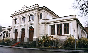 Gamle murhus i Fredrikstad: Phønix Festivitetsbygningen Phønix ble bygget i årene 1875-76 for Vestre Fredrikstad Festivitetslokale a/s etter tegninger av Kristiania-arkitekten Jacob Wilhelm Nordan. Klubbselskapet overtok Phønix i 1911. Bygningen er tredelt, med en høy midtre fløy flankert av to lavere sidefløyer. Midtfløyen rommer en rikt utsmykket festsal med teaterscene. Stiluttrykket er en historistisk variant med elementer av klassisisme og renessanse. Gatefasaden er symmetrisk komponert, med et midtparti markert med korintiske pilastre og rundbuede inngangsportaler.