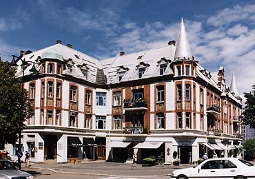 Murbygninger i Moss: Torvgaarden, Gudes gate 2 Torvgaarden er den mest spektakulære av alle bygninger i Moss sentrum. Den er en representant for den typen forretningspalasser som ble populære i Kristiania på 1890-tallet. Torvgaarden har meget til felles i utforming og materialbruk med arkitekt Carl Michalsens bygninger, men den ble oppført etter tegninger av arkitekt Oskar Dehkes, med kontor i Grændsen 17 i Kristiania. Dehkes daterte byggemeldingstegningene i perioden mars - juni 1903. Gården ble ferdigstilt i 1903, og ble oppført for A/S Torvgaarden, ved trelasthandler Otto Swae og kjøbmand Peder Johannes Ludvigsen. Swae hadde sin virksomhet i Moss, men var opprinnelig fra Spydeberg. Ludvigsen var sønn av Toldopsynsmand Ludvig Hansen Espen. Kreditbanken, en lokal forretningsbank, hadde lokaler her inntil fusjonen med Moss Privatbank i 1924. Torvgaarden er den fremste representant for jugendstilen i Moss, og den har solide røtter i mellomeuropeiske stilforbilder, som hollandsk nyrenessanse, nybarokk og enkelte middelalderske elementer. Bygningens grunnflate er brutt opp i rette vinkler, slik at fasadene innfatter det ene hjørnet av Torvet, og varierer mellom symmetri og asymmetri i komposisjonen. Gården har tre og en halv etasje, der hjørner og risalitter markeres med tårnoppbygg og gavler. Første etasje har en åpen, enkel utforming tilrettelagt for butikkdrift, og denne delen av bygningen er nok forandret endel i årenes løp. De øvrige etasjene har vundusakser som artikuleres og bindes sammen av vertikale akser med uforblendet rød tegl, mot flater av pusset tegl. Det er ytterligere detaljer i puss, mens vinduenes brystningsfelter har en rokokkopreget dekor. Balkongens smijern har enkle art nouveau-mønstre.