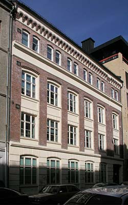 Arkitektur og historie i Oslo: Hattefabrikken, Calmeyers gate 12 Denne fabrikkbygningen ble oppført i 1889 for hattefabrikant Hans Henrik Holm etter tegninger av den innvandrede tyske murmester Friedrich Wilhelm Holland. Holland samarbeidet her med byggmester J. M. Olsen. Holm grunnla skandinavias første hattefabrikk, og hadde flere eiendommer i Osterhaus' gate, der han drev sin omfattende virksomhet. Fabrikken hadde etterhvert eget utsalg i Karl Johans gate 23. Gården er utført i en hannoveriansk lisenestil, der lisenene, som pilastre, danner fasadens dominerende element, og binder sammen annen og tredje etasje. Gårdens fasade er påvirket av bygårdsarkitektur og fabrikkarkitektur, og er utført i upusset rød tegl, med enkle flater i puss. Gårdens sparsomme ornamentikk er for det meste også utført i rød tegl, som den romanske gesimsen.