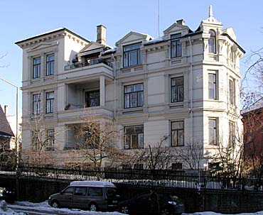 Arkitektur og historie i Oslo: Fagerborggaten 11 Denne frittliggende leiegården ble oppført i 1891 for eiendomsspekulant og byggmester M. Larsen, som også sto bak oppførelsen av en rekke mindre leiegårder på Majorstuen. Arkitekt for Fagerborggaten 11 var Anselm Liljeström. Henimot århundreskiftet var en H. Falsen blitt gårdens eier. Gården ble bygget med tre leiligheter; én i hver etasje, og i 1900 ble de tre husstander forsørget av professor Olaf Broch, Handelsbankens kasserer Johans Christian Fuglesang og tannlege Per Wang-Norderud. Gården er utført i pusset tegl, med nyrenessanse som stiluttrykk. Bygningsformen er sammensatt, ettersom bygningen er formet etter den skjeve tomten, og dessuten har brutt hjørne og et forhøyet karnapp i tre fulle etasjer. Gården forøvrig er bygget over to og en halv etasje, der vinduene i øverste etasje bryter gjennom gesimsen. Fasadens relieff er beskjedent i den tunge underetasjen, og kraftig i toppetasjen.