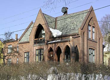 Arkitektur og historie i Oslo: Fastings gate 1 Denne villaen ble oppført i 1884, etter tegninger av arkitekt og ingeniør Niels Bay. Eier tidlig i 1890-årene var grosserer Christopher Pavels Munthe. Han fikk i 1891 oppført det enkle, toetasjes uthuset i rød tegl, byggemeldt som stall med beboelsesrom til Fastings gate 1-3. Munthe bodde også her ved århundreskiftet, med sin familie. Huset har en tilnærmet rektangulær bygningskropp med risalitter og spisse gavler, og er oppført i rød, upusset tegl. Det er bygget over halvannen etasje, og er utført i en meget enkel nygotisk stil, helt uten ornamenter. Spissbuer og stikkbuer bidrar til fasadenes dynamikk, og lisener markerer akser og kontruksjon. Fasadenes komposisjon bygger på grunnleggende symmetrier, men har loggiaer som bidrar til å gi et asymmetrisk inntrykk. I bakre del av villaen har værelsene betydelig lavere takhøyde enn i fremre del. Arkitekten Sverre Fehn hadde en periode kontor i huset.