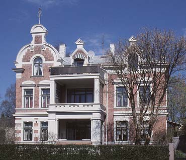 Arkitektur og historie i Oslo: Gyldenløves gate 47 Denne frittliggende villaleiegården ble oppført i 1891 på en tomt utskilt fra Kirkeveien 19b for eiendomsspekulanten Martin Olsen, etter tegninger av arkitekt Carl Michalsen. Martin Olsen fikk utbygget flere eiendommer i Gyldenløves gate i årene omkring 1890, og beholdt denne eiendommen i omtrent et tiår. Blant de senere eiere var Dr. Nils Wangensteen, sønn av landskapsmaler Amaldus Nielsen. Huset har en asymmetrisk komponert hovedfasade med et buet gavloppbygg mot gatehjørnet. Midtpartiet dannes av et markant verandaparti over to etasjer. Huset er utført i nyrenessanse, med fasader i rød tegl og artikulering i puss og stukk.