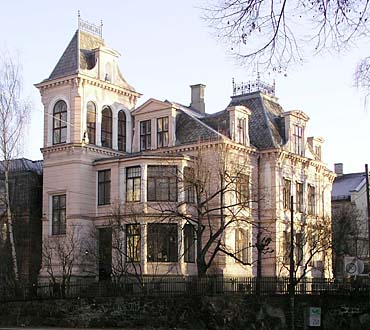 Arkitektur og historie i Oslo: Riksmålsborgen, Inkognitogaten 24 Denne frittliggende villaleiegården ble oppført for grosserer Adolf Holter i 1883, etter tegninger av arkitekt N. S. D. Eckhoff. Foruten flere eiendommer i Kristiania var Holter eier av eiendommene Klevstuen, Framnes og Sjursøen på Sjursøya. Han hadde fra 1870-tallet sin bolig i Inkognitogaten 27, som senere ble gitt til Sverige som ambassadørens residens. Holter var fra Drammen og hadde foruten sine investeringer i eiendom også interesser i skipsrederi og fabrikkvirksomhet. Holter var også eier av Inkognitogaten 24 ved århundreskiftet, og blant beboerne var huseierens sønn, fabrikkeier Christian Holter, som blant annet var produsent av tran, såpe og lys. Huset har en fantasifull, asymmetrisk komposisjon, der det høye trappetårnet mot gaten er bygningens fremste blikkfang, og forbindes med et polygonalt vinterhavebygg med hovedvolumet, som har en symmetrisk komposisjon om en bred midtrisalitt. Huset er utført i pusset tegl, og er holdt i en romantisk nyrenessansestil. Huset var opprinnelig en enklere villa, som har fått mange av sine karakteristiske trekk gjennom tilbygg og påbygg. I nyere tid har huset vært tilholdssted for Riksmålsforbundet.