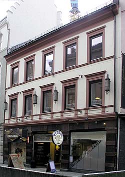 Arkitektur og historie i Oslo: Øvre Slottssgate 15b Denne bygården ble oppført i 1861 av byggmester Asmus Lenschow. I gårdens søndre fløybygning ble det fra starten av drevet bakeri. En ny, bakre fløybygning ble oppført i 1875 for den daværende eier, gartner Eivind Hansen. Han bodde i gården med sin familie, og hadde dessuten flere leieboere. Tidlig i 1890-årene var overrettssakfører Schilling gårdens eier. Etter en brann i 1892 ble arkitekt Eduard Carlén engasjert for å reparere og delvis ombygge gården, og bakeriutsalget ble ominnredet til ordinære butikklokaler. Skolebestyrer Søraas var gårdens eier ved slutten av 1800-tallet, og på denne tiden var gården helt ominnredet for forretningsdrift. Gården har et enkelt, senklassisistisk utseende, der vindusaksene har en regelmessig komposisjon, og det er intet bestemt tyngdepunkt i fasaden. Sokkeletasjen hadde opprinnelig stikkbuede vinduer og døråpninger, men etasjen er ombygget iløpet av 1900-tallet..
