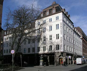 Arkitektur og historie i Oslo: Hotel Savoy, Universitetsgaten 11 På denne tomten lå i annen halvdel av 1800-tallet den prøyssiske byggmester Carl Ungers bygård. Unger foretok flere endringer av bygningen i 1860- og -70-årene, og han kan også ha vært husets opprinnelige arkitekt. Etter byggmesterens død omkring 1890 skiftet gården eier flere ganger, og i 1916 lot Elektrisitets-Aktieselskapet Watt om- og påbygge den gamle bygningen til kontor- og forretningsbygning. Arkitekt for disse radikale forandringene var Rudolf Emanuel Jacobsen. Frem til 1925, da Watt flyttet til Karl Johans gate 14, ble denne bygningen kalt Watt-gården. Senere er huset kjent som Hotel Savoy. Savoy er en kraftig dimensjonert hjørnebygning utført i pusset tegl. Gården er utført i nordisk nybarokk, med et markant, forhøyet hjørneparti og mansardtak. Over inngangen fra Kristian Augusts gate er et slakt karnapp over to etasjer. Første etasje har fasadeforblending i grovhugget granitt, og kun i denne etasjen er hjørnet brukket. Buede stenformasjoner og en karakteristisk lampe understreker denne delen av bygningen. Pussfasadene har hjørnekvadre og enkle gesimser, og ellers ingen ornamentikk.