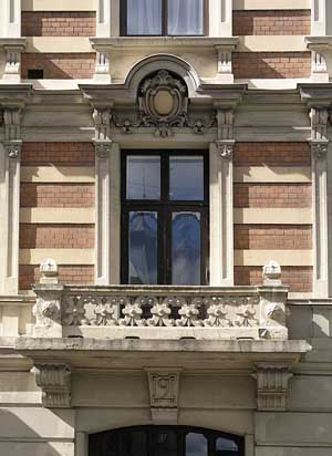Balkong over hovedinngangen.