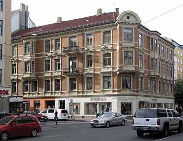 Arkitektur og historie i Oslo: Bogstadveien 24 Den danske blikkenslagermester Oluf Carl Johansen lot i 1899-1900 oppføre denne hjørnegården etter tegninger av den danskfødte arkitekt Carl Konopka. Gården har hovedfasade mot Holmboes gate, og brukket hjørne med hengende karnapp mot Bogstadveien. Gården er bygget i upusset rødlig-gul tegl, med vindusomramminger og gesimsbånd i puss og stukk. Første etasje var opprinnelig kvaderpusset, og rester av dette synes ennå. Fasadene er asymmetriske, med polygonale karnapper som aksemarkører. Stiluttrykket er nyrenessanse. I gårdens seks leiligheter var det ved folketellingen anno 1900 35 beboere i gården, blant dem gårdeier og blikkenslager Johansen, manufakturforretningsdrivende i Narvik Herman Ramson, Telefonistinne Fanny Sommer, Hans Ross med agentur og engrosforretning i jern- og maskinbransjen og ingeniør og tysklandsstudent Trygve Heffermehl.