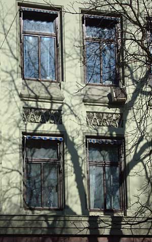 Detalj av vinduer og brystningsfelter.