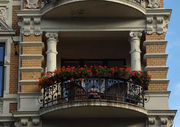 Detalj av sideakse med balkong.