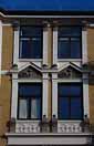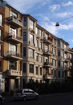 Arkitektur og historie i Oslo: Camilla Colletts vei 9 Denne leiegården ble oppført på en parsell av Oscars gate 49 i 1898-99 ved arkitekt Karl Høie for et konsortium han selv ledet. Gården er oppført i tegl over fem fulle etasjer, og har en gatefasade forblendet med førsteklasses gul tegl, med detaljer i puss og stukk. Første etasje er helpusset, med kvadre omkring vinduer og døråpninger. Fasaden har en grunnleggende symmetrisk komposisjon, der aksen lengst til høyre er brukket noe, i pakt med gateløpet og nabobygningen. Komposisjonen domineres av to polygonale karnapper som definerer hovedaksene. Stiluttrykket er en eklektisk historisme preget av nybarokk. I forkant av byggingen var også arkitektene Oskar Dehkes (prosjekt, 1898) og Ivar Cock (stallbygning, 1897) involvert. Arkitekt Karl Høie bodde selv i gården ved folketellingen anno 1900. På den tiden var her 76 beboere fordelt på 15 leiligheter. Blant Høies leieboere var overrettssakfører Fredrik Michelsen, høyesterettsadvokat Halfred Klingenberg, redaktør og brukseier Kristian August Horne, tegneskoleelev og til tider praktiserende arkitekt Benedicta Haslund og sekretær i Norges Hypotekbank Bernhard Dunker. Dunkers sønn Jens Gram Dunker (1892-1981) ble etter hvert en anerkjent arkitekt.