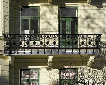 Detalj av fasadeparti med balkong.