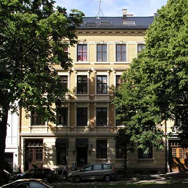 Arkitektur og historie i Oslo: Gyldenløves gate 4 Denne leiegården ble byggemeldt i 1896 på en tomt skilt ut fra Frognerveien 11 for byggmester og eiendomsspekulant Berger Johansen ved den innvandrede svenske arkitekt Carl Aaman. Johansen lot oppføre mange bygårder i 1890-årene, blant andre nabogårdene i Gyldenløves gate 6 og Colbjørnsens gate 15, samt Bygdøy allé 1, alle ved arkitekt Aaman. Gården er bygget i pusset og upusset tegl over fire fulle etasjer. Fasaden er enkelt og symmetrisk komponert, med bredere vinduer i sideaksene. Portrommet er dessuten plassert utenfor sideaksen. Første etasje er kvaderpusset, og de øvrige etasjene er forblendet med gulaktig teglsten av høy kvalitet. Annen og tredje etasjes vinduer har likt utformet stukkbelistning, med enkle brystninger, ornamenterte felter og rette, konsollbårne overdekninger. I fjerde etasje er vinduene sparsomt artikulert, med en meanderbord som knytter dem sammen i overkant. Gesimsen har brede konsoller. Stiluttrykket er en enkel nyrenessanse, og utførelsen er meget lik Gyldenløves gate 6, hvis gatefasade senere er slemmet og malt. I 1977 ble det bygget ut for beboelse på loftet. Gården var kort etter ferdigstillelsen kommet i S. og Jul. Sørensens eie. Ved folketellingen anno 1900 fantes her 27 beboere fordelt på 7 leiligheter. Blant menneskene her på denne tiden var bygningsforretningsinnehaver John Lund, telegrafistinne Christine Stenersen, postekspeditør Axel Johannessen og ”bøssemager” Christian Theodor Østern. Sistnevnte vant det første Landsskytterstevnet, som ble arrangert i Kristiansund i 1893.