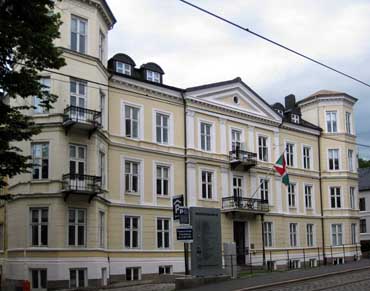 Arkitektur og historie i Oslo: Inkognitogaten 33 Denne store, frittliggende leiegården ble byggemeldt i 1874 for kjøpmann Christian August Dietrichson ved arkitekt N. S. D. Eckhoff, på en tomt som tidligere tilhørte det eldre Parkveien 51b. I 1892 var gården i A. Morgenstiernes eie, og i 1899 tilhørte den fru Thora Enger Olsen. Inkognitogaten 33 er oppført i pusset tegl over tre fulle etasjer, med markante oktogonale hjørnetårn som danner overgang til bygningens sidefløyer. Den monumentalt anlagte gatefasaden er symmetrisk komponert, med de fire etasjer høye tårnene og en bred midtrisalitt som hovedmotiver. Midtrisalitten har kraftige, kanellerte pilastre med sirlig artikulerte kapiteler. Midtpartiet krones av en bred tempelgavl. Første etasje er kvaderpusset, og takgesimsen er beskjedent markert. Tårnene har kvaderpuss i grunt relieff i hele sin høyde. Midtparti og flanker er aksentuert med smijernsbalkonger. Stiluttrykket er nyrenessanse, med et slottslignende preg. I 1888 byggemeldte byggmester Bøhme privet og skur på eiendommen, og i 1916 oppførtes en garasje ved August Johnsen. Senere er det bygget takarker, og det er kommet til et tilbygg på baksiden av eiendommen. Ved folketellingen i 1875 bodde byggherre Dietrichson her med sin familie. Blant de øvrige beboerne var ingeniør Henry James Brooke, artillerikapteinene Theodor Christian Bruun Frølich og Gustav Adolf Sommerfelt, samt statsråd Jakob Lerche Johansen. Sistnevnte ledet Marine- og postdepartementet, og ble siden kontreadmiral. Blant beboerne her i 1885 var marinemaler Carl Wilhelm Bøckmann Barth, rittmester Alexis von Munthe af Morgenstierne og Xylograf August Gothenburg. På den tiden var rittmesteren gårdens eier. Ved folketellingen anno 1900 bodde det 55 personer her, fordelt på i alt 13 leiligheter. Blant menneskene her på den tiden var ovenfornevte gårdsbestyrerinne og gårdeier Thora Enger Olsen, musikklærerinne Anna Holmboe, Cand. Jur. og kopist i Revisjonsdepartementet Thorvald Pram og lagmann Emil Stang. Sistnevnte deltok ved stiftelsen av partiet Høyre, og var også dets første formann. Han var også statsminister for to regjeringer.