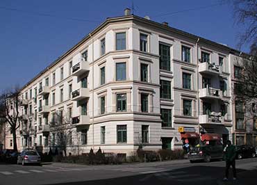 Arkitektur og historie i Oslo: Jacob Aalls gate 40 Denne store hjørnegården til Hammerstads gate ble byggemeldt i 1910 for firmaet A/S Onstad & Co, ved den innvandrede svenske arkitekt Carl Aaman. Tomten ble utparsellert før 1899, men det tok tid før den ble bebygget. Gården er oppført i pusset tegl over fire fulle etasjer, og har brukket hjørne. Gatefasadene er begge asymmetrisk komponert, med store trappevinduer i de dominerende aksene. Flere akser understrekes av tunge balkonger med enkel smijernsdekor. Første etasje er kvaderpusset, med små, unnselige inngangspartier. Annen etasjes vinduer innfattes av stukkdekor i form av enkle pilastre og kraftige overdekninger. Aksene forbindes med hverandre ved enkle bånd i murpuss. I etasjene over er artikulasjonen noe enklere. T-postvinduene har innslag av småruter i øvre felt. Stiluttrykket er en enkel senhistorisme, preget av 1800-tallets eklektisme.