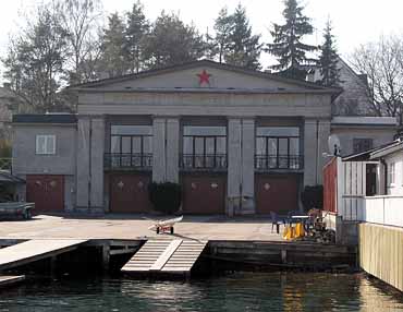 Arkitektur og historie i Oslo: Norske Studenters Roklub, Huk aveny 2b En gruppe medisinerstudenter stiftet i 1897 Norske Studenters Roklub, og de første årene hadde klubben et skur på Vippetangen som båthus. I 1902-03 fikk man oppført et båthus på Huk-selskapets eiendom (sveitserstil) ved arkitekt Ole Sverre. Dette klubbhuset ble revet i 1922, og materialene ble benyttet til byggingen av klubbens landsted på Kalvøya i Bærum, Solodden. Klubbens medlem Wilhelm K. Essendrop, en ung arkitekt utdannet ved NTH i Trondheim, fikk oppdraget med å tegne det nye klubbhuset. Klubb- og båthuset sto ferdig 6. september 1923, med en anslått byggekostnad på kr. 105.000. Klubbhusets monumentale fasade vender mot sjøen og er utført i en stram nyklassisisme, med et bredt, gavlprydet midtparti med parstilte pilastre over to etasjer. Underetasjen er lagerrom, og alle åpningene mot sjøen er doble treporter. I annen etasje ligger den praktfulle festsalen. Huset har form av et tempel, med nøkterne "sideskip", og er bygget i betong. Klubbhuset er tilbygget flere ganger: Treningsrom med robasseng (1936, arkitekt Essendrop), kjølerom (1958) og toppetasje på bakre del (1963).
