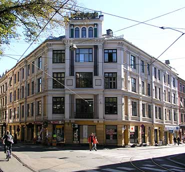 Arkitektur og historie i Oslo: Parkveien 6 Denne bolig- og forretningsgården på hjørnet av Welhavens gate ble oppført i 1891-92, oppført ved arkitekt Niels Stockfleth Darre Eckhoff for hans egen regning. Gården er en stor hjørnebygning med et meget bredt, brukket hjørne, og er oppført i pusset tegl over fire fulle etasjer. Hjørnepartiets midtakse dominerer komposisjonen, og har en femte etasje i form av et tårnoppbygg. De to gatefasadene har samme symmetriske komposisjon, med en markert, hengende midtrisalitt og to underordnede siderisalitter. Første etasje har tidens moderate kvaderpuss, men over dette er fasaden rikt utsmykket, med søyler og pilastre. Stiluttrykket er en monumental nyrenessanse. I 1890-årene var Roald Amundsen blant gårdens leieboere. Henimot århundreskiftet var huset kommet i Olaf Anton Thingelstads eie. Thingelstad drev agentur og kommisjonsforretning og håndterte kjøp og salg av eiendommer. Dessuten var han assistent i Spareskillingsbanken. Ved folketellingen anno 1900 bodde Thingelstad selv her med sin familie. På den tiden hadde gården 67 beboere fordelt på 11 leiligheter. Blant leieboerne var kontorsjef Harald Bjerkø, trafikkdirektør ved Statsbanerne Christian Mellbye og pensjonatvertinne Elisabeth Werner. Blant gårdens pensjonatbeboere var ingeniør Ivar Graf, arkitekt Ole Lund, modehandlerinde Anna Wensell og et stort antall kontormedarbeidere.
