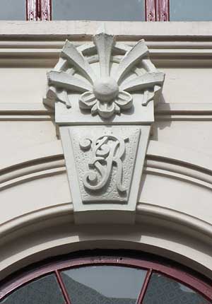 Antefiks med initialer.