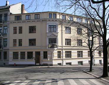 Arkitektur og historie i Oslo: Skovveien 37 Denne leiegården ble byggemeldt i 1892 på en parsell av Skovveien 49 av byggmester og eiendomsspekulant Edwin Pedersen ved arkitekt Bernhard Steckmest. Gården ble opprinnelig bygget over tre etasjer i pusset tegl. Gården ligger langs en brukket strekning av Skovveien, og har to hjørner, både til gaten og til en liten stikkgate. De to hjørnene har samme type kraftig artikulasjon, med meget uvanlige balkongløsninger. På hvert av hjørnene hviler en halvrund balkong liksom på en stett. Dette partiet er avgrenset av pilastre. Gården, som er utført i nyrenessanse, har opprinnelig hatt en langt mer ornamentert fasade. Etter påbygg av loftsleiligheter i 1952-53 brøt det ut en brann i gården, og under reparasjonsarbeidene ble fasadene forenklet. Henimot århundreskiftet var A. Andersen og L. Blakstad blitt gårdens eiere. Blant gårdens 37 beboere fordelt på 13 leiligheter ved folketellingen anno 1900 var gårdeier og underkvartermester Ludvig Blakstad, jernvarehandler Ole Amble, forretningsmann og direktør i Norges Bank Peder Emil Wium og rentenistenkefruene Sofie Bull og Nicoline Michelet.