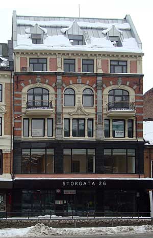 Arkitektur og historie i Oslo: Storgaten 26 Denne forretningsgården ble oppført i 1898-99 for grossererne Severin Westberg og Schjerve ved arkitekt Ludwig Zapffe. Arkitekten tegnet enda to bygninger som de samme grosserere lot oppføre på denne tiden; Lybekkergaten 1 og 3. Severin Westberg kom fra Skjeberg, og drev grosshandel med kolonialvarer i Kristiania. Gården er bygget over fem fulle etasjer samt mansardetasje, og har en gatefasade for epokens forretningsgårder, med store vindusåpninger i de to nederste etasjene, og utstrakt bruk av tegl og ulike stensorter i forblendingen, sammen med en overdådig stukkornamentikk. Fasaden er symmetrisk komponert, med finhugne stenpilastre som markerer skillet mellom aksene. De to flankene er markert med svungne balkonger i felter som strekker seg over tredje og fjerde etasje, som har kurvehankbuede overdekninger. ”ANNO 1899” er skåret inn i pilastrene. De to nederste etasjene er forblendet med polert sort larvikitt. Stiluttrykket er nybarokk. Her hadde Oslo Reptilpark tilhold en periode, og restauranten Bella Napoli har vært å finne her i flere tiår.