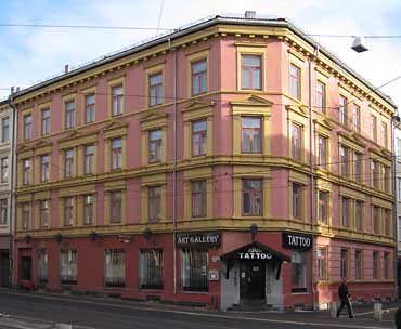 Arkitektur og historie i Oslo: Toftes gate 24 Denne hjørnegården ble byggemeldt i 1893 på en tomt opprinnelig skilt ut fra Fossveien 1b for byggmester N. Carlsen ved den innvandrede tyske arkitekt Rudolf Haeselich. Haeselich tegnet flere gårder i dette området, som Toftes gate 20, 26, 28, 32, 40, 46 og 48, for ulike byggherrer i denne perioden. Gården er oppført over fire etasjer, og har fasader mot Toftes gate og Hesselbergs gate, med et brukket hjørne. Første etasje i gatefasadene var opprinnelig kvaderpusset, men det meste av dette er fjernet i forbindelse med endringer av butikkvinduer. I annen og tredje etasje er vinduene flankert av pilastre, hvorav de i annen etasje er kanellerte. Begge disse etasjene har brede brystningsbånd, og i tredje etasje er overdekningene spisse. Stedvis er vinduene parstilte, med felles overdekning. Fjerde etasjes vinduer har enkel artikulering, og beskjedne, rette overdekninger. Fasadene har en uregelmessig komposisjon, med vekt på rommenes plassering. Stiluttrykket er nyrenessanse. Henimot århundreskiftet var gården kommet i Peder O. Ekers eie. Han og familien var selv beboere i gården. Her bodde ved folketellingen anno 1900 85 personer fordelt på 19 leiligheter. Blant Ekers leieboere på denne tiden var bokholder ved Bygningssnekkernes kooperative forening Jacob Thorbjørnsen Naur, sersjant og handelsborger med kull-, ved- og furasjeforretning Edvard August Torkildsen Støttum, maskinist hos Nationaltheatret Fritz Weden og modepyntsyerske Marie Syvertsen.