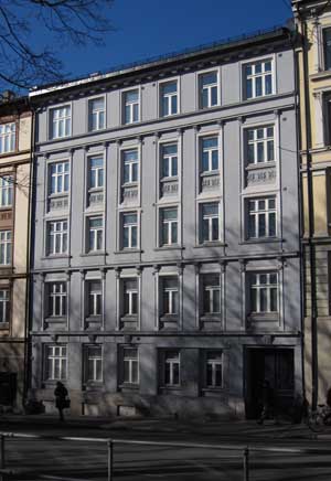Arkitektur og historie i Oslo: Uelands gate 24 Denne beskjedne leiegården ble byggemeldt i 1897 for byggmester Nils Helgestad fra Toten, ved arkitekt Olaf Boye, på en tomt skilt ut fra Bjerregaards gate 70. Helgestad lot sent i 1890-årene oppføre flere gårder i dette området, som Bjerregaards gate 70 (arkitekt Boye), og Bjerregaards gate 66 og 68 (arkitekt S. I. Hansen). Uelands gate 24 er bygget i pusset tegl over fem fulle etasjer, med saltak. Komposisjonen er regelmessig, og grunnleggende symmetrisk, med brede sideakser. Første etasje har opprinnelig vært kvaderpusset, men her er det utført flere endringer. Tredje og fjerde etasje er knyttet sammen med vertikal stukkbelistning, og mellom disse etasjene finnes ornamenterte brystningsfelter. Øverste etasje er svært enkelt artikulert. Stiluttrykket er en forenklet nyrenessanse. I 1909 ble gården rammet av en brann, og deretter reparert. Ved folketellingen anno 1900 hadde gården 61 beboere fordelt på ni leiligheter. Gårdeier Helgestad med familie bodde her, og blant leieboerne var overveivokter i Aker Hans Paulsen, syerske ved kåpefabrikk Ida Johanne Kølbel, maskinagent for Singer Jens Diskerud og sementstøper Nicolai Olsen.