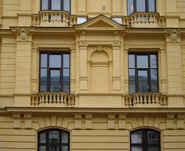 Detalj av fasade mot plassen.
