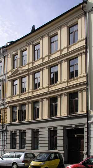 Arkitektur og historie i Oslo: Vibes gate 22 Denne beskjedne leiegården ble byggemeldt i 1893 for C. Larsen ved arkitekt Frithjof Aslesen, på en eiendom skilt ut fra Rosenborggaten 12. Henimot århundreskiftet var gården kommet i Hans Martin Østenstads eie. Vibes gate 22 er oppført i pusset tegl over fire fulle etasjer, og har en asymmetrisk komponert gatefasade. Vindusaksene er jevnt fordelt, foruten de tettere i venstre flanke, som er knyttet sammen med en bred fronton. Portrommet er lagt i motsatt flanke, i en kvaderpusset førsteetasje. I de øvrige etasjene er vinduene flankert av pilastre med enkle kapiteler og smårosetter. Stiluttrykket er nyrenessanse. På et tidspunkt er to kapiteler og deler av gesimsdekoren fjernet. I 1968 ble taket tekket på nytt. Ved folketellingen anno 1900 hadde gården 27 beboere fordelt på fire leiligheter. Blant menneskene her på denne tiden var trelastagent Simon Haugen, lagerfullmektig ved tranfabrikk Johan Gunerius Thorsen Østensvig og dampskipsfører Petter Severin Christensen. Her bodde dessuten gårdeier og forhenværende skipsfører Østenstad med familie.
