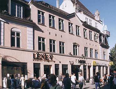 Promenade langs Karl Johans gate: Dybwadgården, Karl Johans gate 3 Denne bygningen ble oppført i 1830, for kjøpmann Jacob Erasmus Dybwad, som etablerte bondehandel her i 1825. Bygningen hadde opprinnelig to etasjer, der Dybwad drev handel i første etasje mens han selv bodde i annen etasje. Arvingene utviklet og utvidet virksomheten til å omfatte i første omgang garving og omsetting av lær, og siden også trelast, bank og skipsrederi. Mot slutten av 1800-tallet holdt firmaet O. A. Haug & Co. til her, og i deres regi ble Landhusholdningsselskabernes Fællesindkjøbs-forretning etablert i gården. Dette var Felleskjøpets første utsalg. Bygningen har vært tilbygget og ombygget en rekke ganger, men den viktigste ombyggingen ble utført etter arkitektfirmaet Thune & Thürmers tegninger i 1913-14 for Halvorsen og Larsens papirhandel, som hadde overtatt eiendommen kort etter år 1900. Eier av gården like frem til papirhandelens inntreden var imidlertid den kjente bokhandler Jacob Dybwad, en etterkommer av kjøpmannen. Av tidligere byggearbeider her kan nevnes påbygg og tilbygg ved byggmester Johan Fredrik Lühr i 1866 og en bakbygning oppført i 1884 av byggmester Carl Schøyen. Einar Smith og kompanjongen Ove Ekman utførte et verksteds- og lagerbygning i bakgården her i 1902. Bygningen er preget av empirestilen som var rådende da den ble bygget, og også på moten ved Thune & Thürmers ombygging. Påbyggingen skapte et bredt, markert midtparti, med to smale flanker med mansardtak. Den midtre aksen understrekes av et diskert gavloppbygg og en klassisistisk vindusomramming.