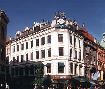 Promenade langs Karl Johans gate: Halléngården, Øvre slottsgate 14 Denne gården ble oppført i 1875, for Sten og Ecklund, ved den innvandrede tyske tømmermester Friedrich Gerhardt. Av de to byggherrene var det parykkmaker Carl Johan Ecklund fra Kristiania som ble stående som eier av gården. Ecklund og Gerhardt bodde begge i samme bygning i Strandgaten på 1860-tallet. Bygningen er utført i nyrenessanse, med tredje og fjerde etasjes kolossalpilastre som bygningens mest fremtredende kompositoriske element. Parykkmaker Ecklund døde på 1890-tallet, og enken Marthe Marie solgte eiendommen til brødrene Hallén. Halléns hanskefabrikk ble etablert av Christian Hallén fra Kristiania, og hans tre sønner Ludvig, Wilhelm og Rikhard overtok etterhvert driften, og i 1895-96 etablerte de sin hanskeforretning her ved Egertorvet. Forretningen åpnet 4. april 1896. Ved århundreskiftet drev frøken Johanne Ekenæs et lite hotell i de øvre etasjer. Hanskeforretningens interiører, som er bevart idag, ble utformet av arkitekt Carl Michalsen, og interiørets malerier ble utført av O. C. Thorkildsen. Det ble dessuten utført en ombygging ved arkitekt Harald Aars i 1913. Hanskeforretningen måtte innstille driften i 1989, og lokalene ble ominnredet til serveringsstedet 3 Brødre, til minne om brødrene Hallén.