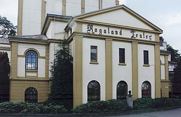 Fra Stavangers murarkitektur: Rogaland teater Rogaland teater ble anlagt i et område med flere av Stavangers viktige monumentalbygg. Teatret ble oppført i 1883, etter tegninger av arkitekt Hartvig Sverdrup Eckhoff. Nabobygningene Stavanger museum, Turnhallen og Stavanger sykehus er også utformet av arkitekt Eckhoff. Eckhoffs teaterbygning ble oppført i pusset tegl, i en enkel nyrenessansestil, med en symmetrisk komponert hovedfasade med tempelgavl. Teatret har senere fått et tverrstilt tilbygg og et overdrevent stort tilbygg for snorloft. I tiden frem til Den annen verdenskrig var teaterbygningen åsted for mange grupperingers fåfengte forsøk på å drive et profesjonelt teater. Alle teaterselskapene havarerte etter kort tid grunnet trang økonomi. I 1947 etablerte man Rogaland Teater AS, som eies av Staten, Stavanger kommune og Rogaland fylkeskommune.
