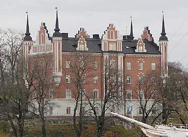 Fra Stockholms arkitekturhistorie: Amiralitetshuset, Skeppsholmen Amiralitetshuset ble oppført i årene 1647-1650, og skal ha blitt bygget etter tegninger av den hollandske arkitekt Louis Gillis. "Amiralitetets kansli" benyttet huset inntil slutten av 1600-tallet, da Amiralitetshuset ble innredet som arkiv. En omgripende forandring av eksteriøret ble foretatt etter at arkivet flyttet ut på 1750-tallet, og man innredet huset til lagerhus. I årene 1844-46 ble Amiralitetshuset ominnredet til kaserne, og i sammenheng med dette ble bygningen restaurert og betydelig ombygget. Arkitekt Fredrik Blom sto for utformingen, og lot eksteriøret tilnærme seg sitt opprinnelige utseende, dog med noen nye romantiske tårnutbygg og en mer vertikalt orientert komposisjon. Bloms utførelse beskrives som hollandsk nyrenessanse.