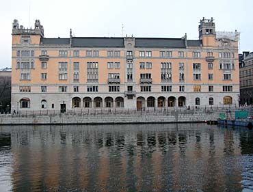 Fra Stockholms arkitekturhistorie: Rosenbad Her sto fra 1789 arkitekt Erik Palmstedts Bondeska palats, som ble revet i 1898. I årene 1899-1902 ble det nye Rosenbad oppført. Komplekset er sammensatt av to bygninger, og dekker et halvt kvartal. Byggherrer var Aktiebolaget Nordiska Kreditbanken og Aktiebolaget Rosenbad, og arkitekt var Ferdinand Boberg. Rosenbad ble oppført som et blandet bygningskompleks, med restaurant, bankvirksomhet, forretningslokaler og luksuriøse boliger. Idag huser kvartalet Regjeringskanselliet. Rosenbad er utført som et sydeuropeisk renessansepalass, med kraftige tårnoppbygg, symmetrier og pseudosymmetrier i komposisjonen, og med en monumental hovedfasade mot Strömmen. Rosenbad er preget av Bobergs tunge jugendstil, med de sedvanslige lette artikulasjoner i finhuggen natursten.