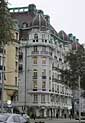 Fra Stockholms arkitekturhistorie: Strandvägen 7 Strandvägen 7a-c ble oppført som et tredelt, men enhetlig bygningskompleks i årene 1907-11 etter tegninger av arkitektene Georg Hagström og Fritiof Ekman. De første utkastene til nr. 7a ble utført av arkitekt V. Bodin. Strandvägen 7a og 7b ble bygget for Per Bocander, henholdsvis ved byggmestrene F. Sjösten og C. W. Andréen. Per Bocander var en av de store boligspekulantene i Stockholm på denne tiden. Strandvägen 7c ble oppført for J. Eriksson ved byggmester P. Östlihn. I sin tid hadde den berømte finansmannen Ivar Kreuger sin bolig i Strandvägen 7c. Bygningskomplekset har kneisende, høye fasader mot Strandvägen, med et meget vertikalt preg. Gården er utført i pusset tegl over seks etasjer samt en høy mansardetasje. Hovedfasaden er symmetrisk komponert, med to kraftige oktogonale tårn som sideakser i den symmetriske komposisjonen. Første og annen etasje danner én tyngre og én lettere del i sokkelen, mens de tre etasjene over er gruppert sammen med stiliserte pilastre. Stiluttrykket er en overdådig rokokkopreget senjugend. Bygningskomplekset kostet ialt omkring fire millioner, målt i datidens svenske kroner. Esplanade hotel har i noen år vært å finne i Strandvägen 7a.