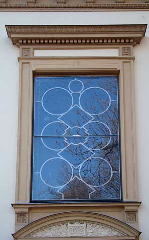 Detalj av vindu over inngangen.