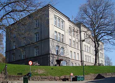 Murarkitektur i Tønsberg: Slottsfjellskolen Frem til begynnelsen av 1880-årene hadde Tønsbergs Almueskole tilhold i beskjedne og utilstrekkelige lokaler. I 1882 ble det av kommunestyret bevilget kr. 80 000 til oppførelse av en ny skolebygning på en tomt i Slottsfjellets skråning. Skolen ble tegnet av Kristiania-arkitekten Henrik Thrap-Meyer, som hadde en lang rekke skolebygninger på samvittigheten. Til ansvarhavende byggmester valgte man den innvandrede svenske byggmester Nils Peter Sjøstedt, som etablerte seg i Tønsberg omkring 1860. Sjøstedt mottok et honorar på kr. 4 000 for sitt arbeid, og i alt kom byggearbeidene på kr. 116 600, altså en betydelig overskridelse av det opprinnelige budsjett. Skolen fikk i alt 26 klasseværelser samt gymnastikklokaler og sangsal. Den 3. mars 1884 ble skolen innviet ved skolekommisjonens formann, prost Brede Thurmann, og skolebestyrer Engebret Hougen. Sistnevnte ble innlosjert i en egen bestyrerbolig bestående av seks værelser og kjøkken. Skolebygningen er oppført i pusset tegl over tre etasjer, i rause dimensjoner. Bygningen er stilmessig temmelig spartansk, utført i en enkel, hannoveriansk lisenestil, i slekt med flere av arkitekt Thrap-Meyers skolebygninger. Hovedfasaden mot byen har en streng, symmetrisk komposisjon, med en dominerende midtrisalitt flankert av to siderisalitter. Vinduene er stikkbuede, og store stikkbuede felter omslutter igjen disse og binder sammen annen og tredje etasje. Sidefasadene er også symmetriske, med de samme stikkbuede feltene i smalere utgave. Med sin plassering i landskapet og sine store dimensjoner ruver skolebygningen over byen. Skolen ble nedlagt i 1982, men ble senere gjenåpnet som Teie videregående skole, avdeling Slottsfjellet. Senere ble navnet Færder videregående skole.